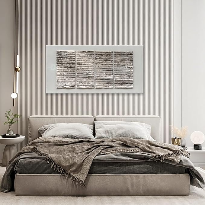 Minimal art doesn’t have to be flat. Choose linen-wrapped canvases, plaster reliefs, or woven wall hangings. These sculptural pieces catch the light differently throughout the day, creating subtle movement and intrigue.